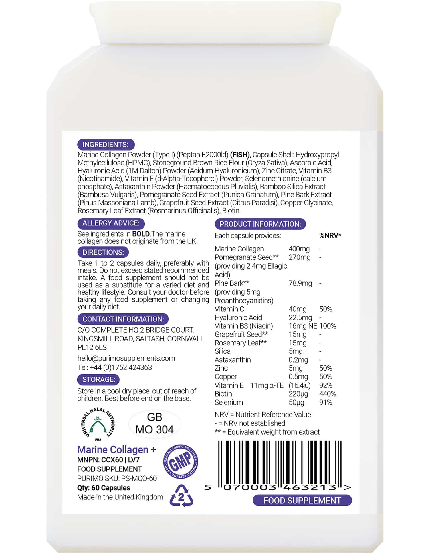 Pure hydrolysed marine collagen peptides paired with supportive nutrients to nourish skin, joints, and connective tissue. Helps maintain strength, elasticity, and long‑term repair.